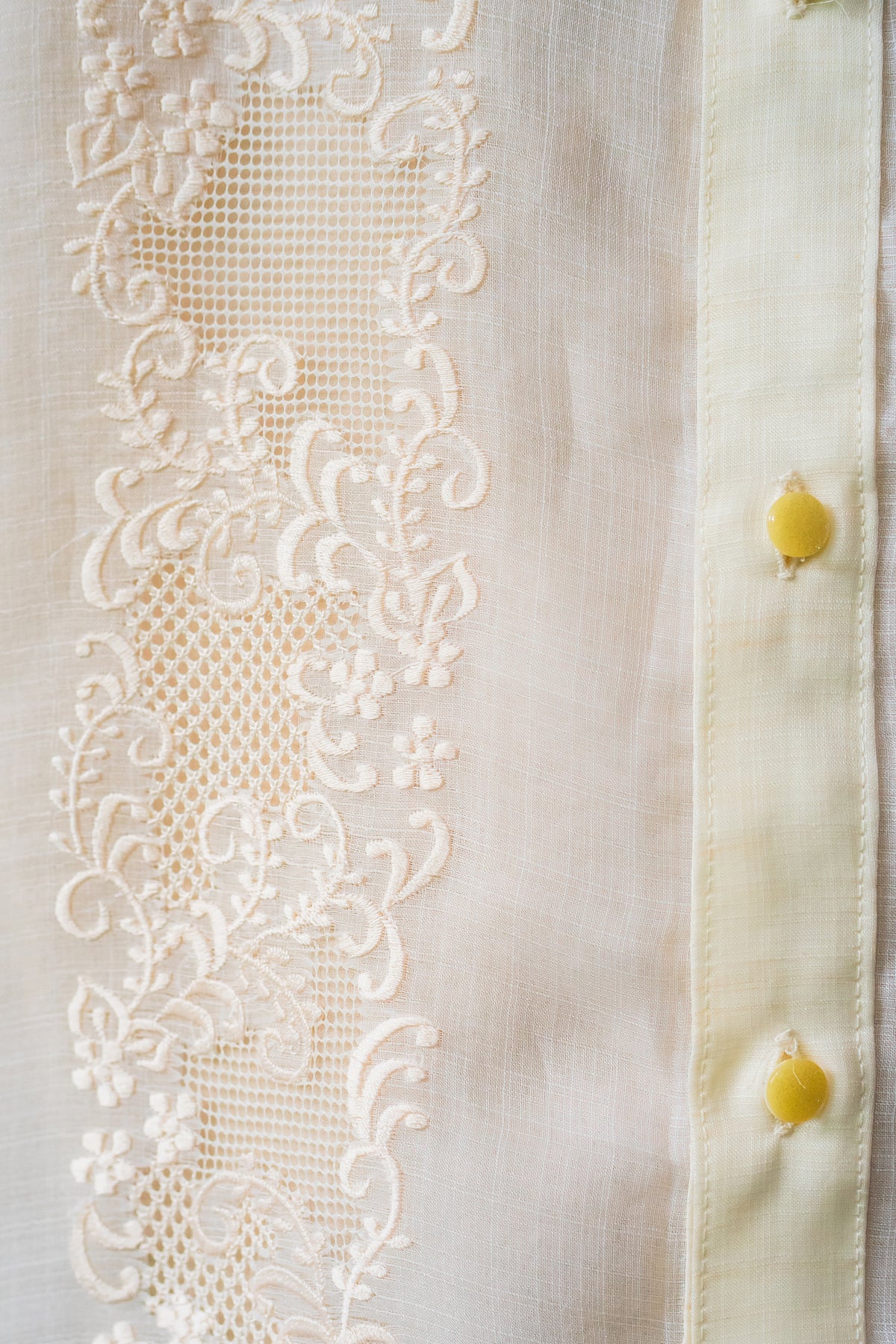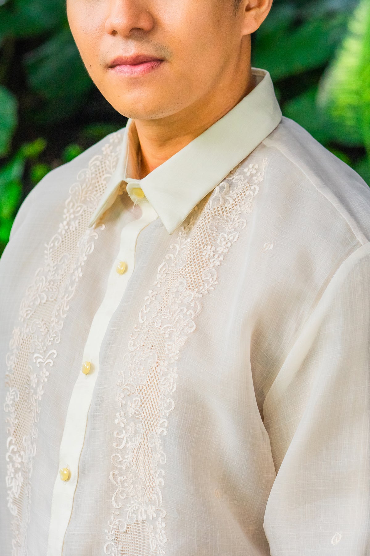 Material: CocoonEmbroidery: Traditional (Open All The Way)Size: Neck 17 1/2 inches; Sleeve Length 35 inchesEmbroidered in Lumban, Philippines