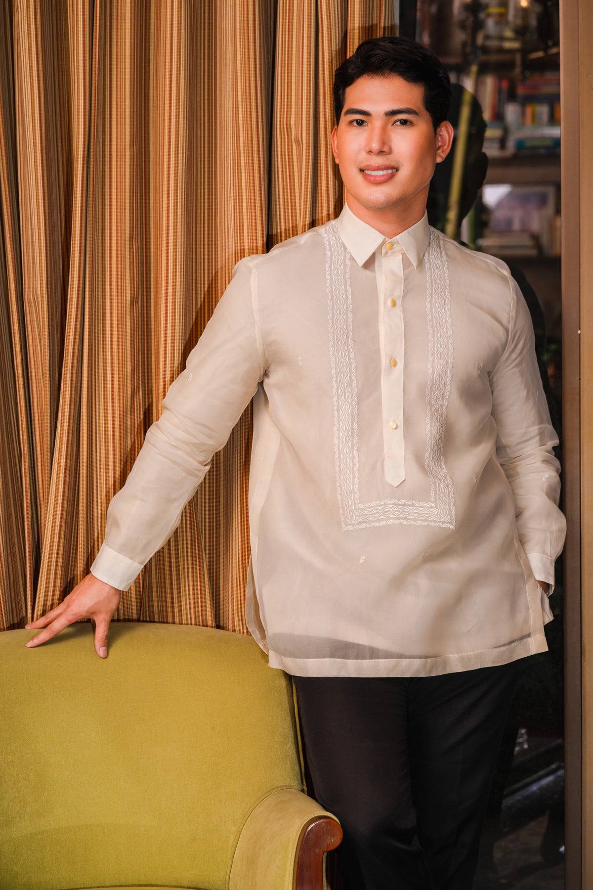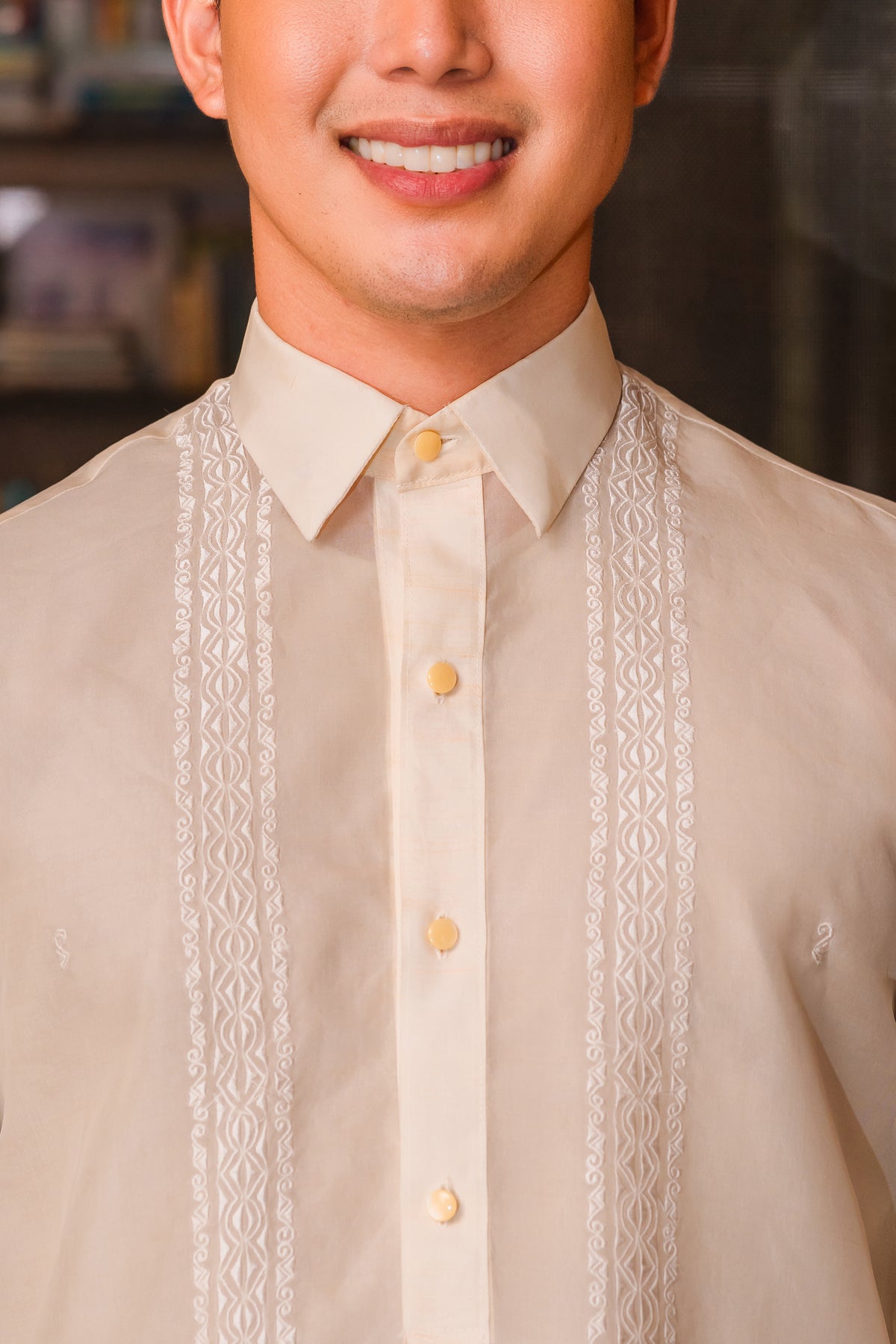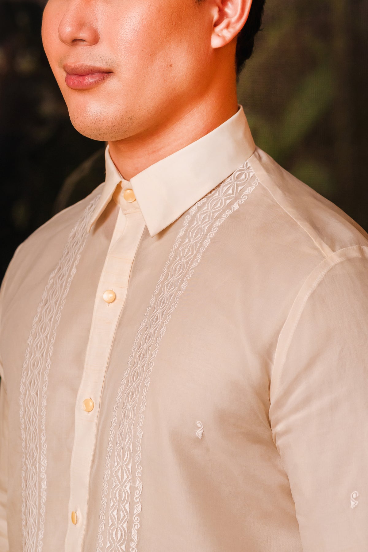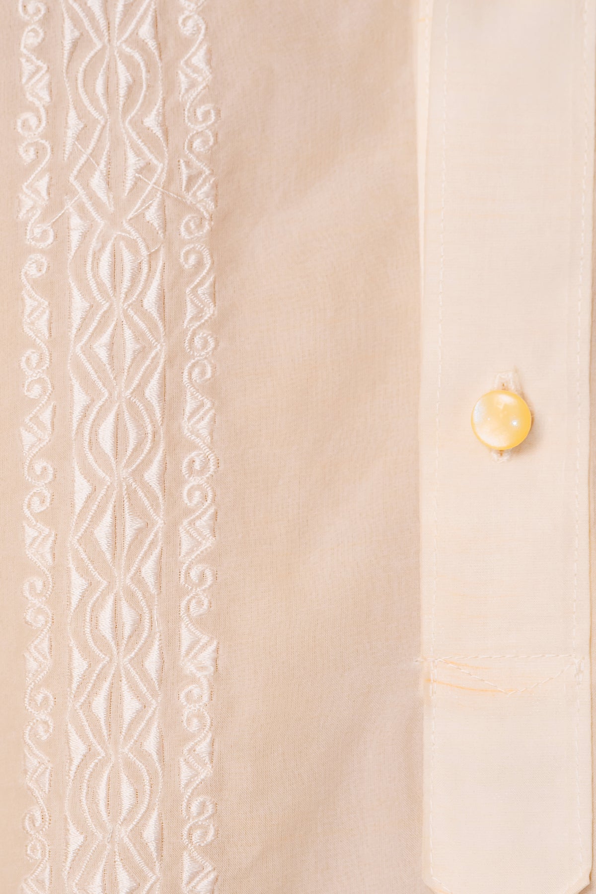 Material: Jusi PiñaEmbroidery: Ethnic (Closed Pitchera)Size: Neck 15 1/2 inches; Sleeve Length 33 inchesEmbroidered in Lumban, Philippines