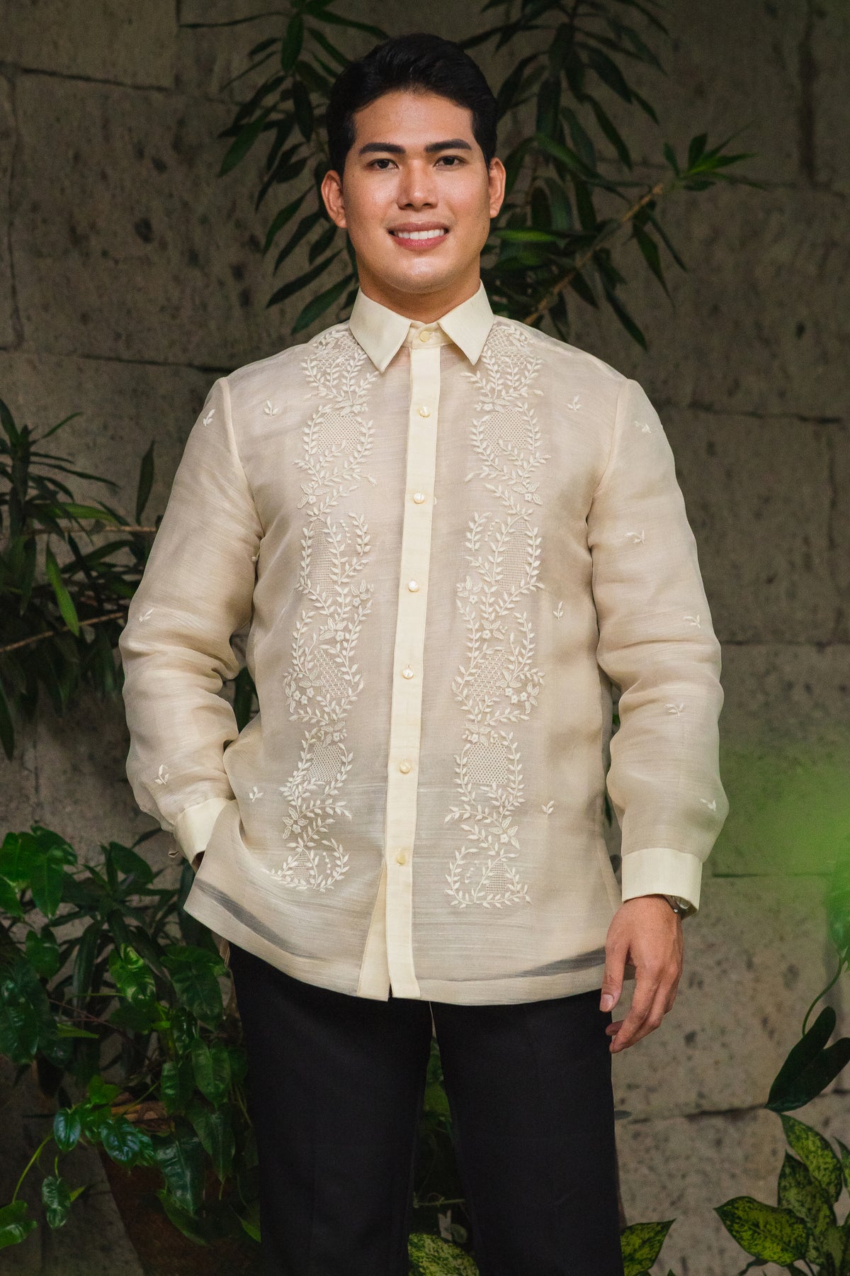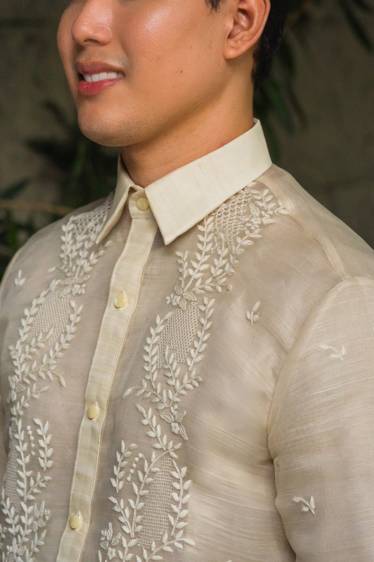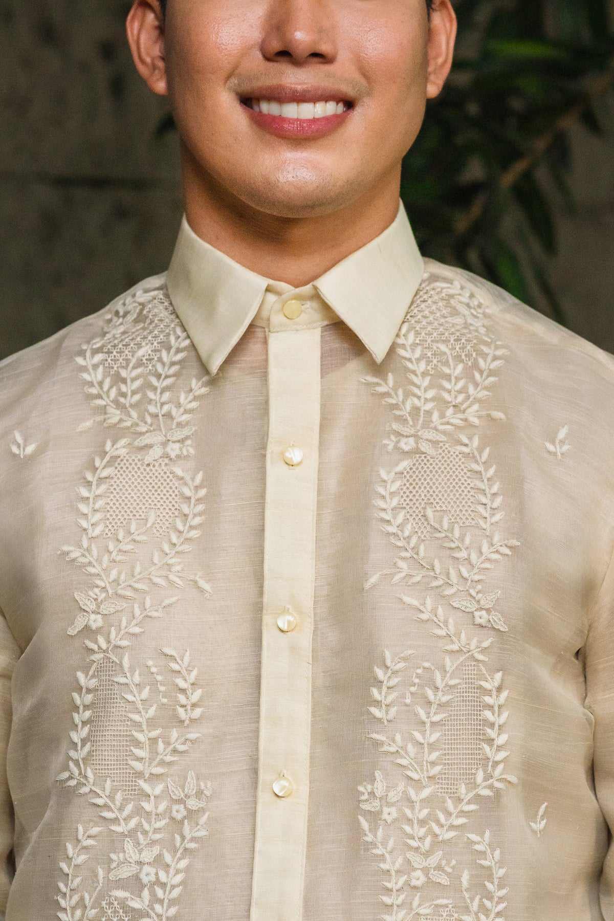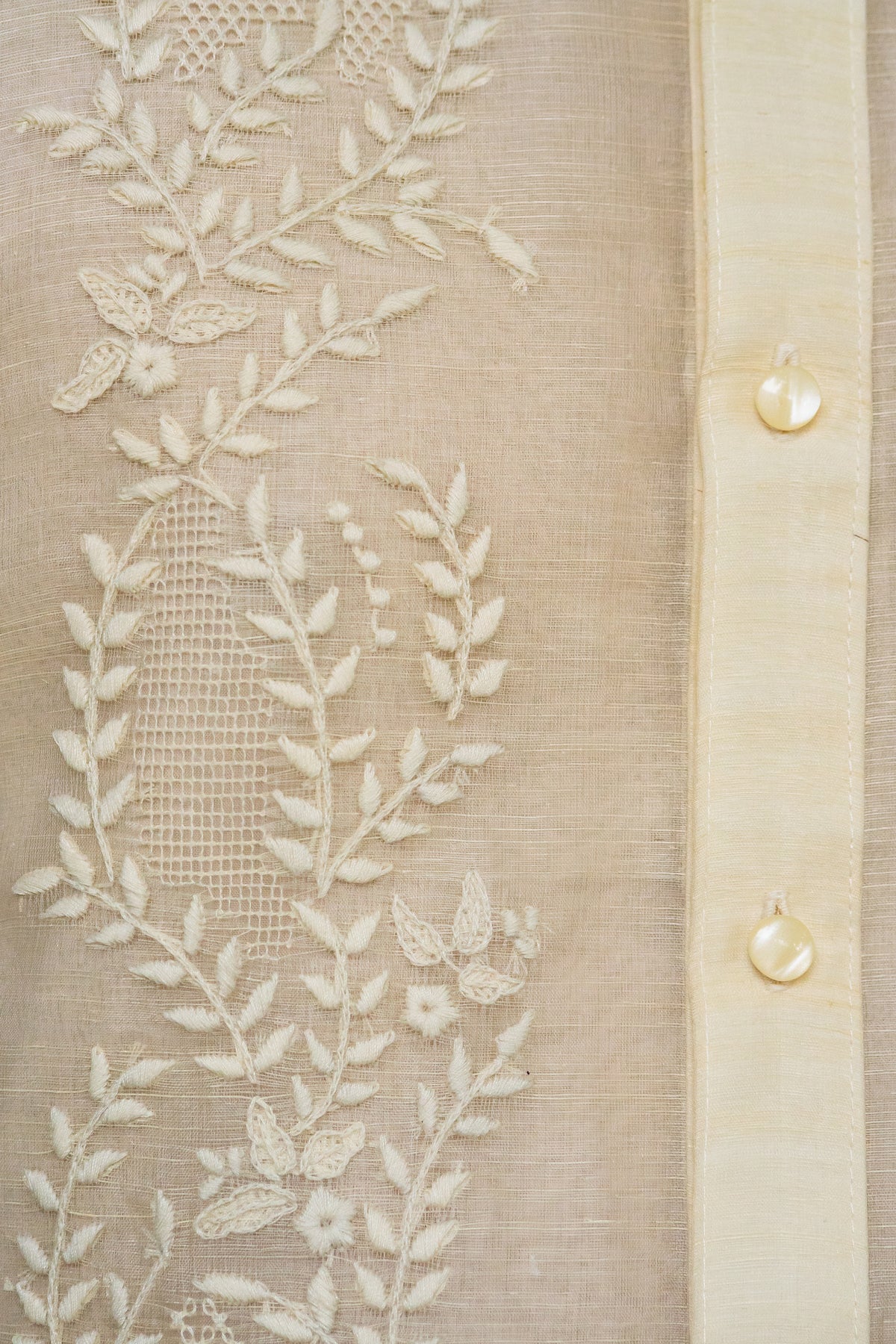 Material: Piña SilkEmbroidery: Traditional (Open All The Way)Size: Neck 15 1/2 inches; Sleeve Length 33 inchesEmbroidered in Lumban, Philippines