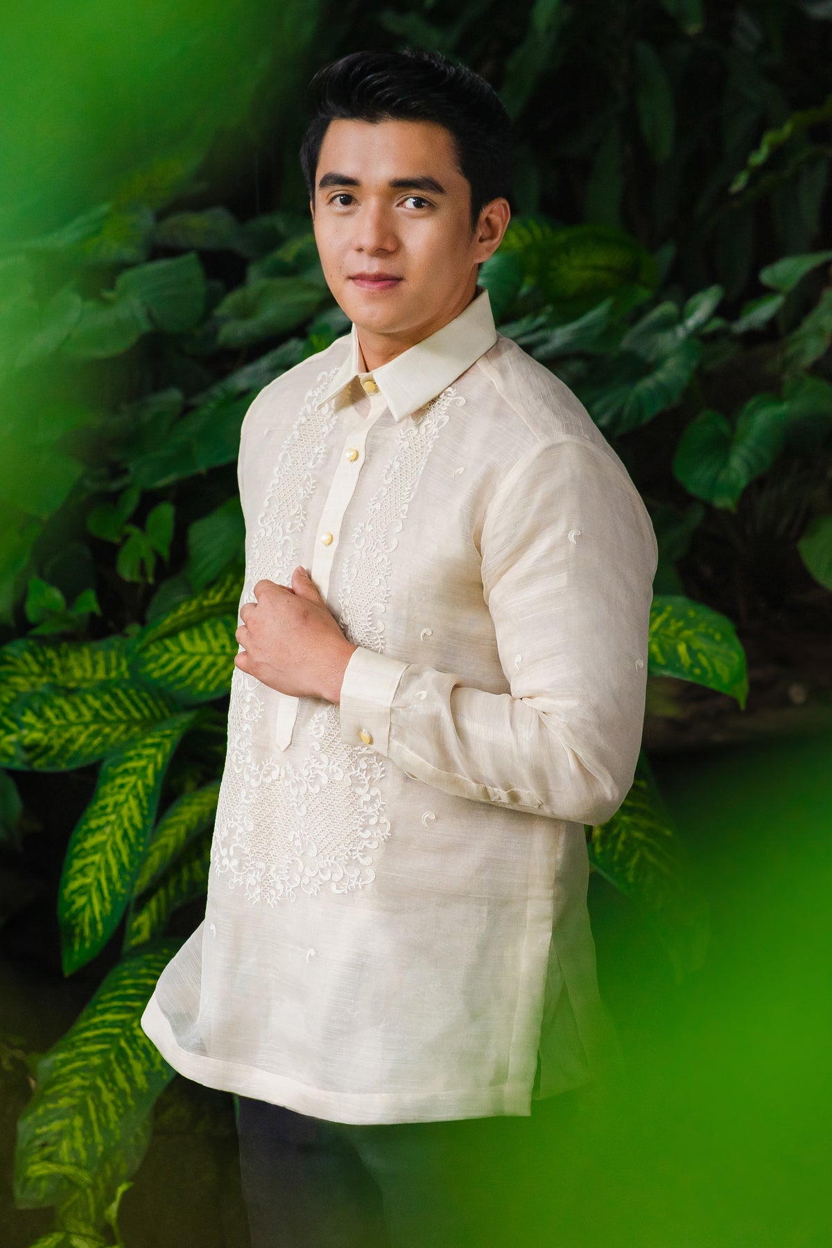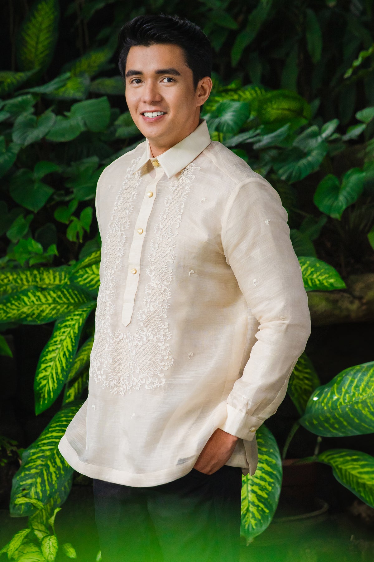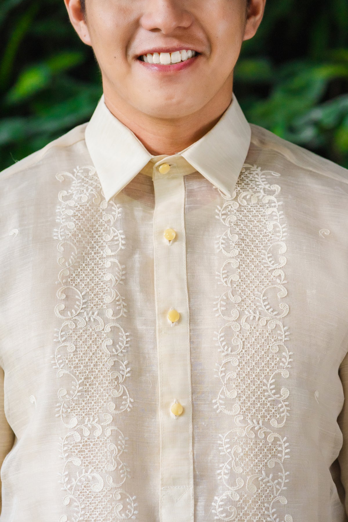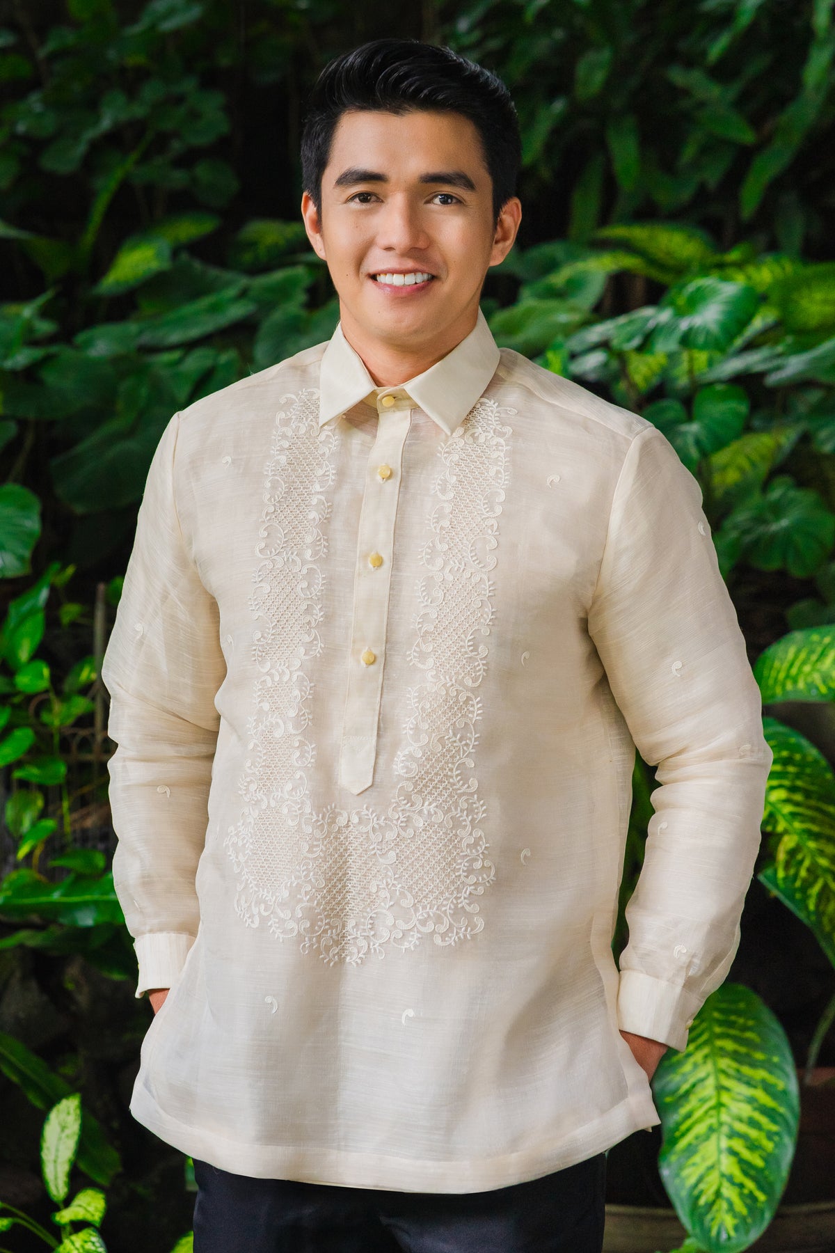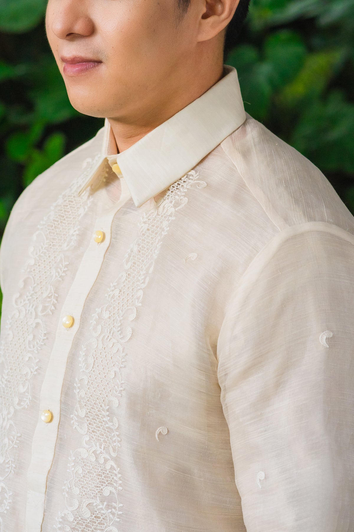 Material: Piña SilkEmbroidery: Traditional (Closed Pitchera)Size: Neck 16 inches; Sleeve Length 33 inchesEmbroidered in Lumban, Philippines
