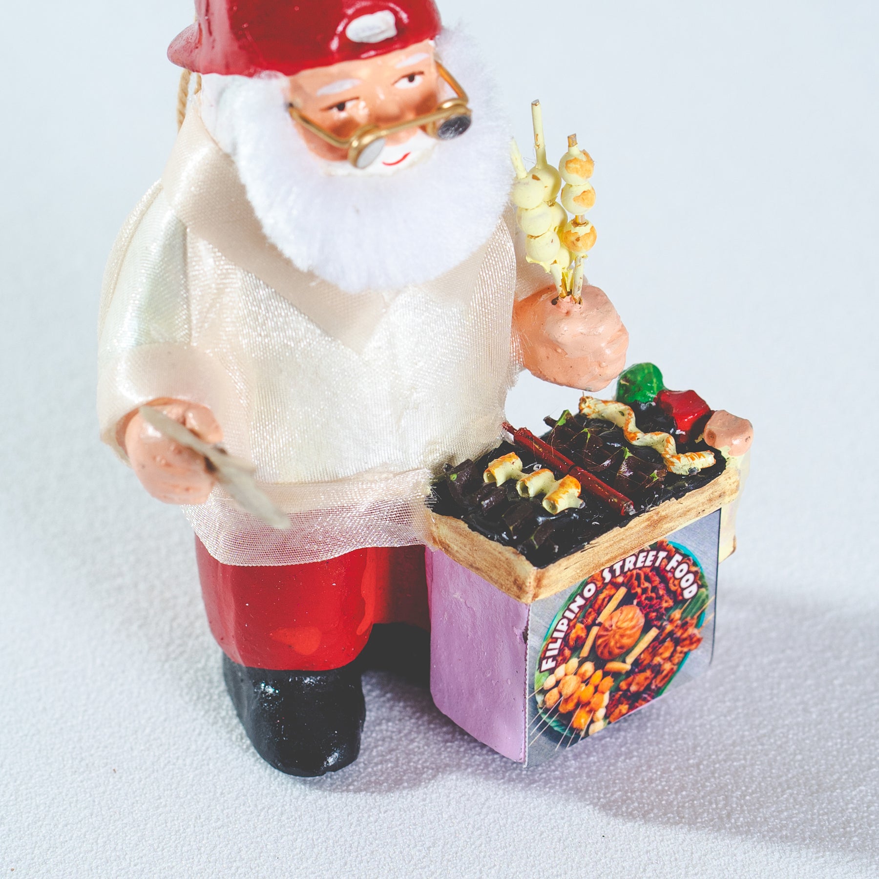 Mini Filipino Santa ClausDesign: Street FoodSize: 4 inches TallMaterial: ResinManufactured in: NCR, Philippines