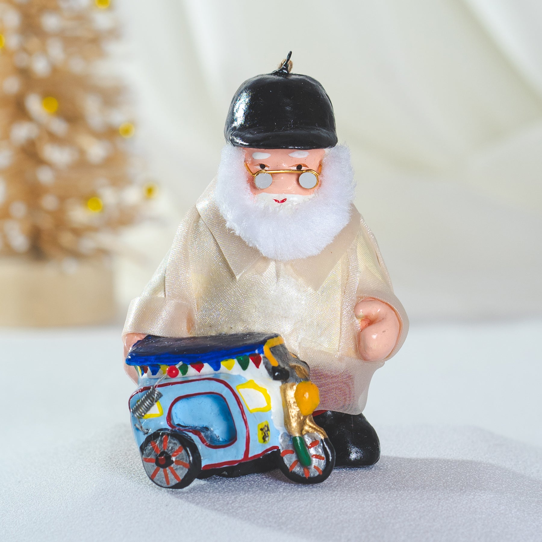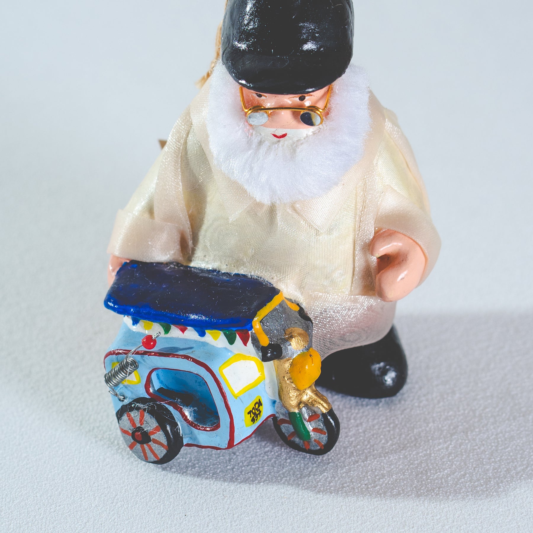 Mini Filipino Santa ClausDesign: TricycleSize: 4 inches TallMaterial: ResinManufactured in: NCR, Philippines