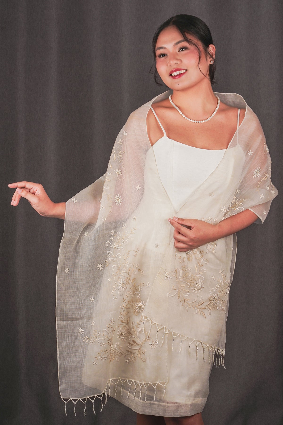 Piña Cocoon Shawl with Beads and Tassle - Design 3