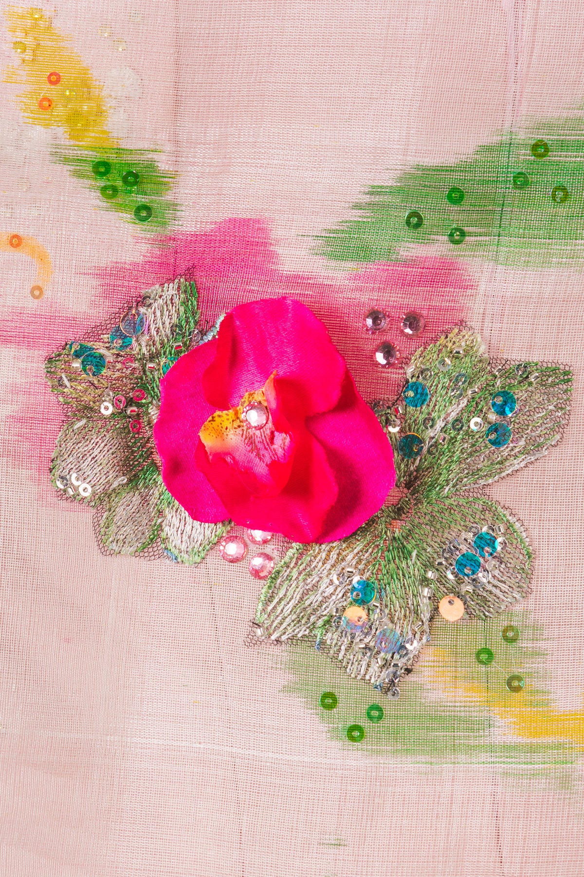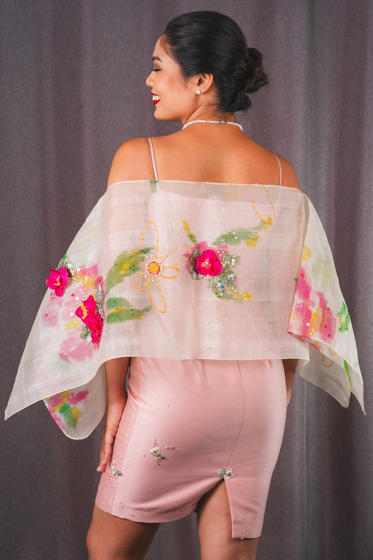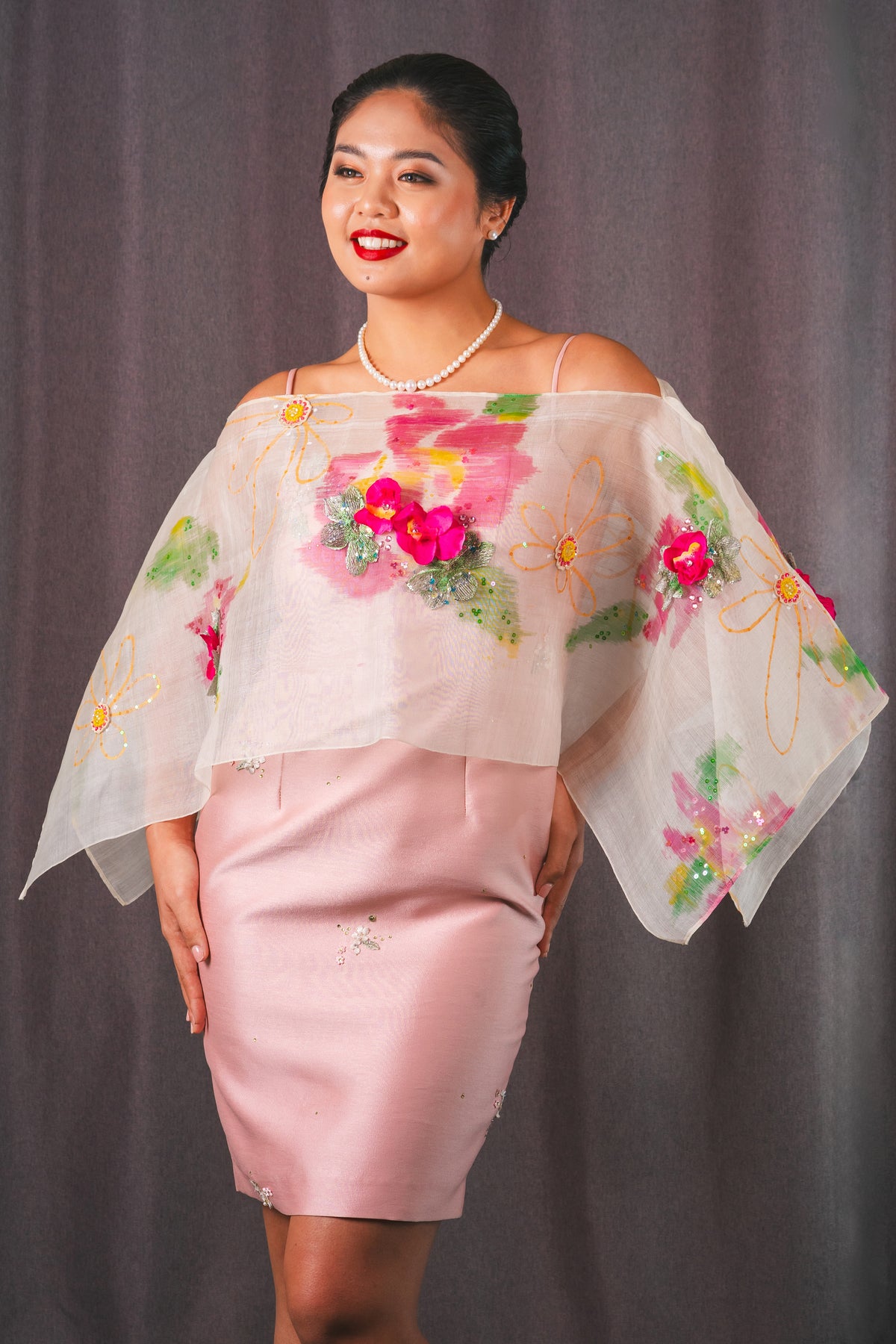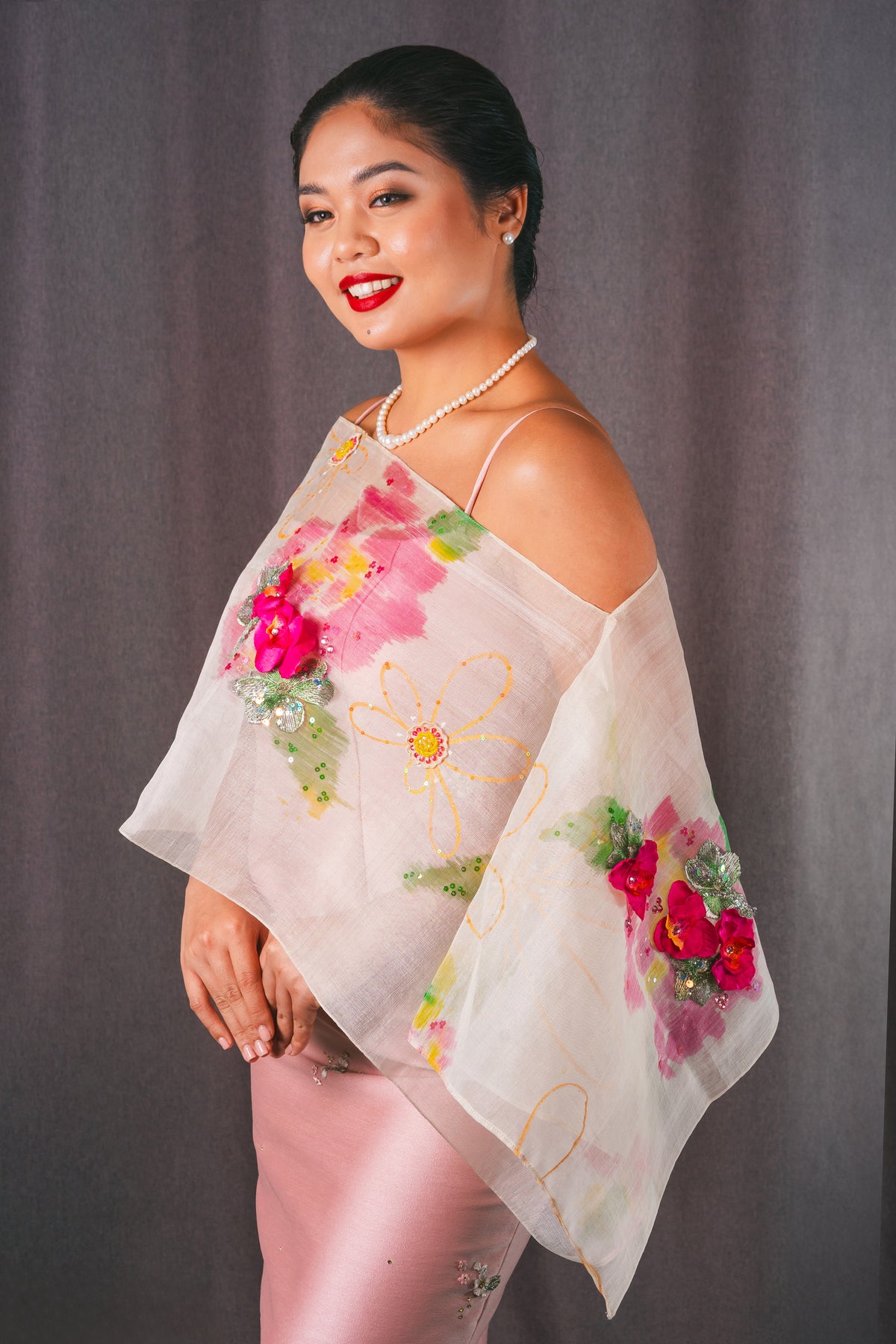 Piña Silk Hand Painted Poncho with Flower Embellishment