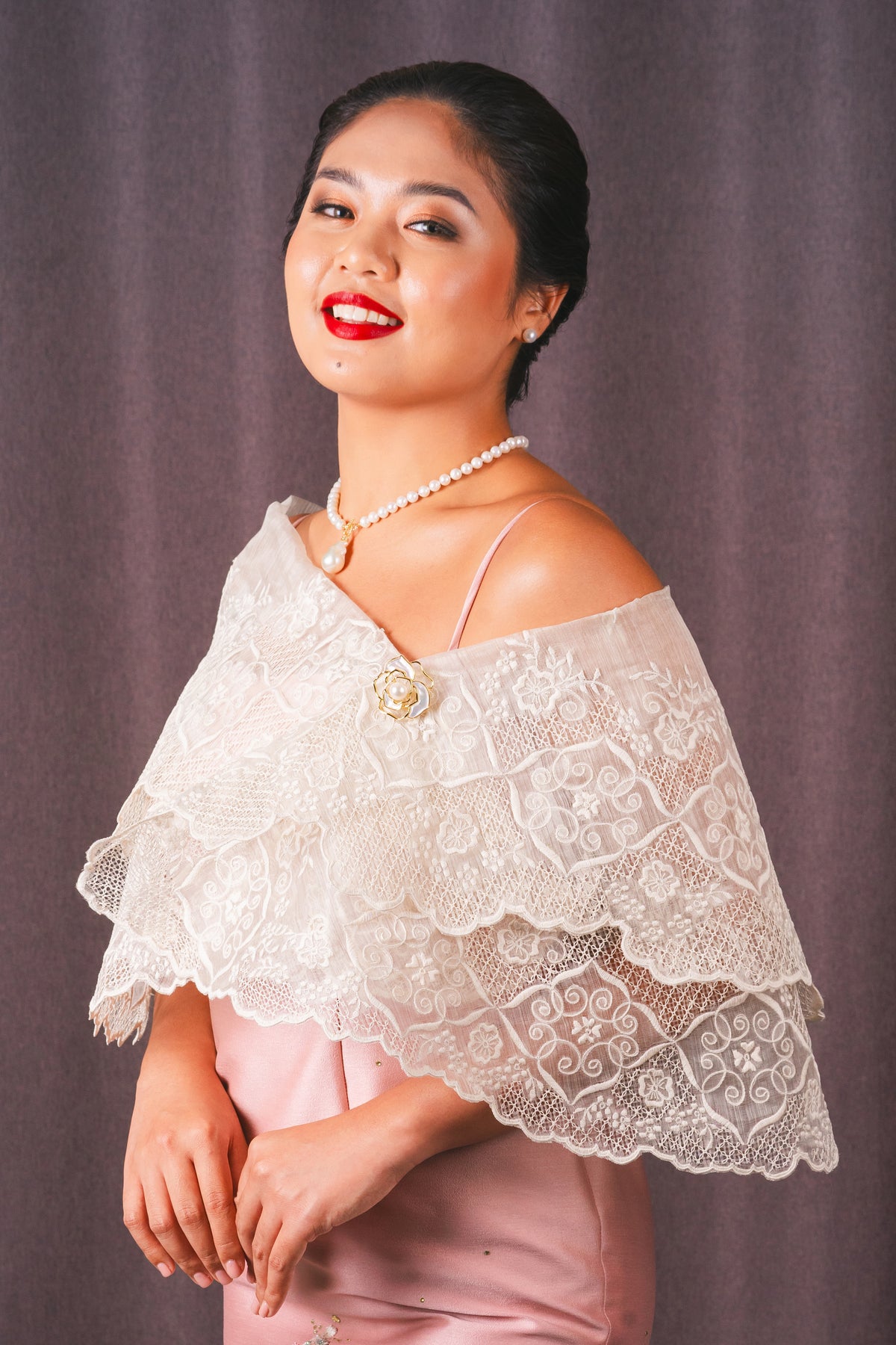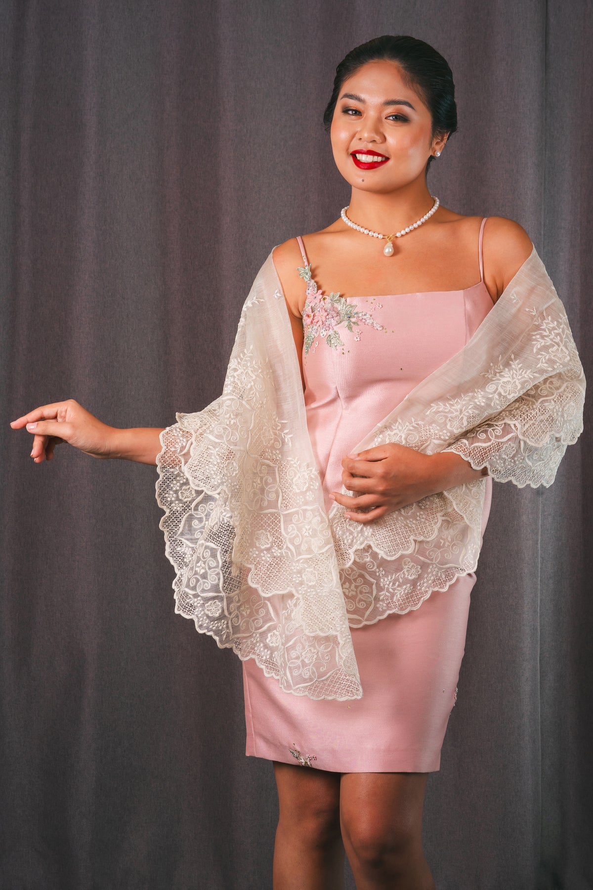 (One of A Kind Design)Material: Piña Silk (Pineapple and Silk Fiber woven together)Design: Fusion of Handmade Calado with m.e.